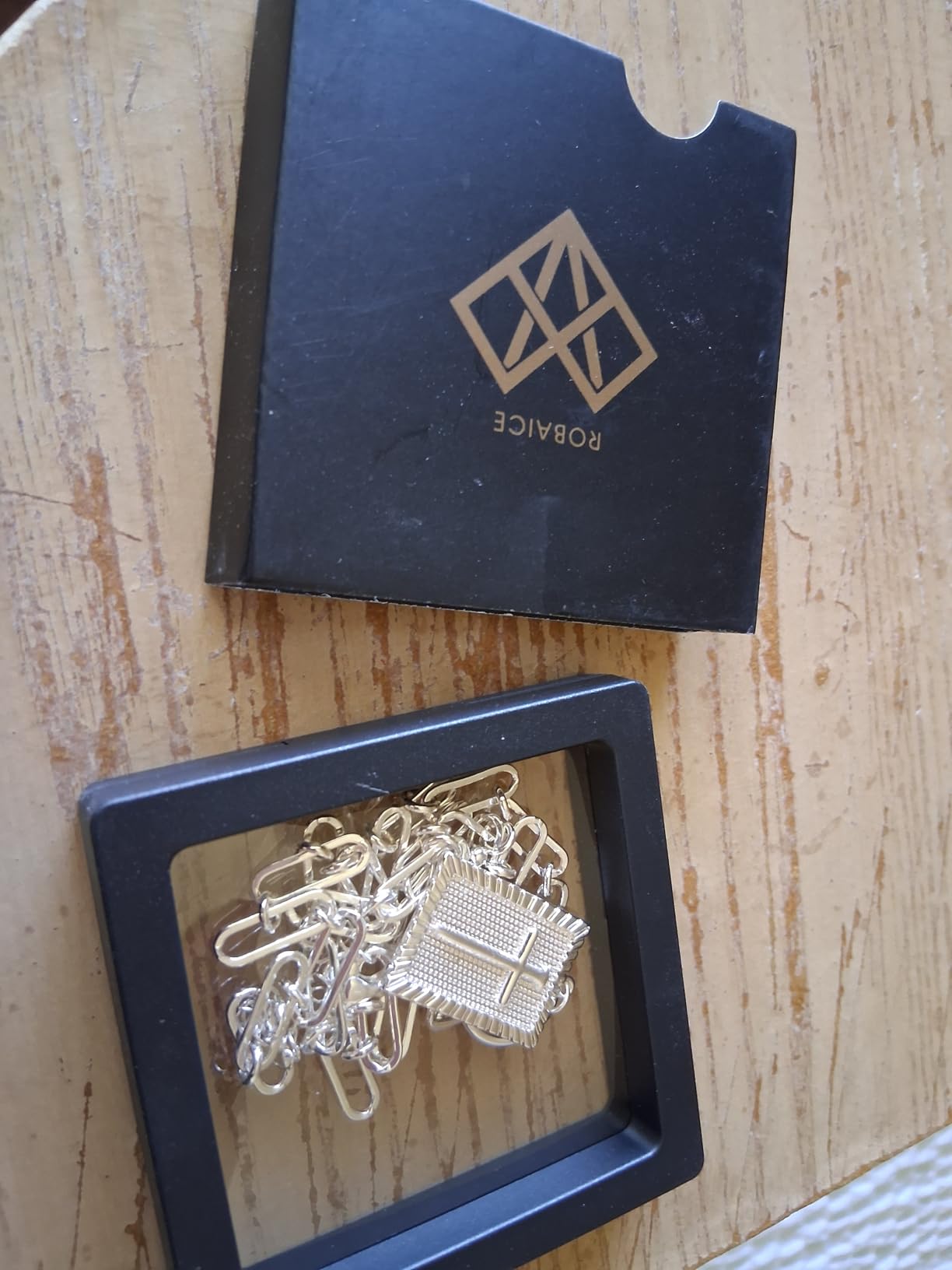 This 18K gold-plated stainless steel necklace combines timeless craftsmanship with modern design. Featuring a detailed rectangular cross pendant framed with intricate texture, it brings strength and elegance to any look. The unique toggle clasp and bold chain links make it perfect for layering or wearing solo — a statement piece that carries meaning wherever you go.